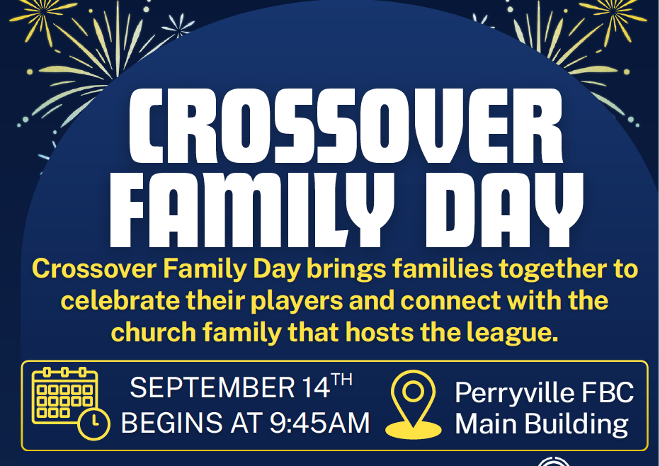 Sunday September 14th is Crossover Family Day at Perryville First Baptist Church. This is a chance for families to celebrate their players while getting a glimpse of the church that hosts our basketball league.
